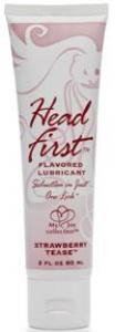 -. Feature : Head First Flavored Lubricant is available in two flavors: Strawberry and Cool Mint. Each sold separately. Seduction in one lick. Head First makes oral sex more appealing for women. Great flavor makes this product fun for both! / This water soluble lubricant is thick and good tasting. Helps makes oral pleasure more appealing for women. Non-graphic, discreet 2 fluid ounces tube. Head First Flavored Lubricant Strawberry is a registered trademark for Kingman My Joy Collection Murrieta California. Package may vary.