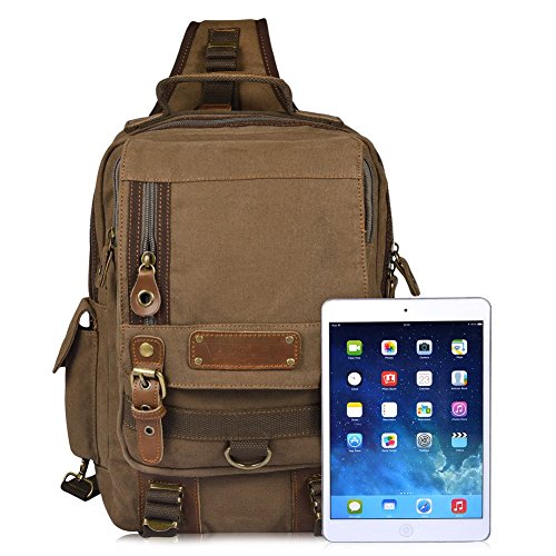 Vbiger Men's Canvas Backpack Sling bag Chest Pack for Travelling