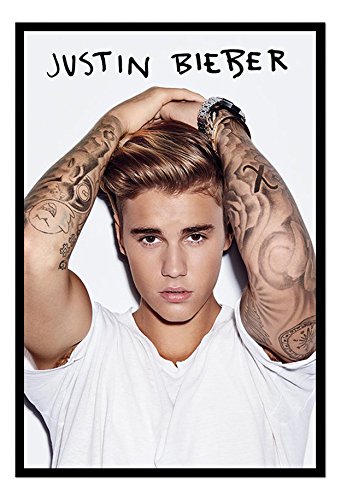 -. Title : Justin Bieber White T Poster Magnetic Notice Board Black Framed - 96.5 x 66 cms (Approx 38 x 26 inches)