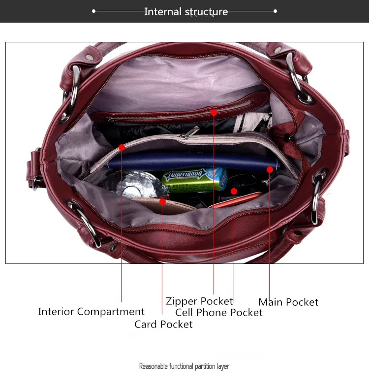 Leather Women Bag:Women Handbag Soft Tote Bags