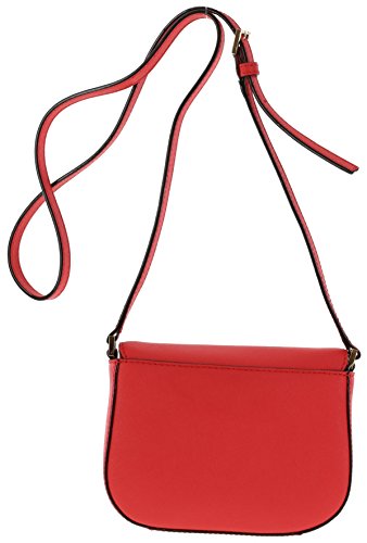 Saffiano leather bag with front flap magnetic snap closure and gold toned hardware