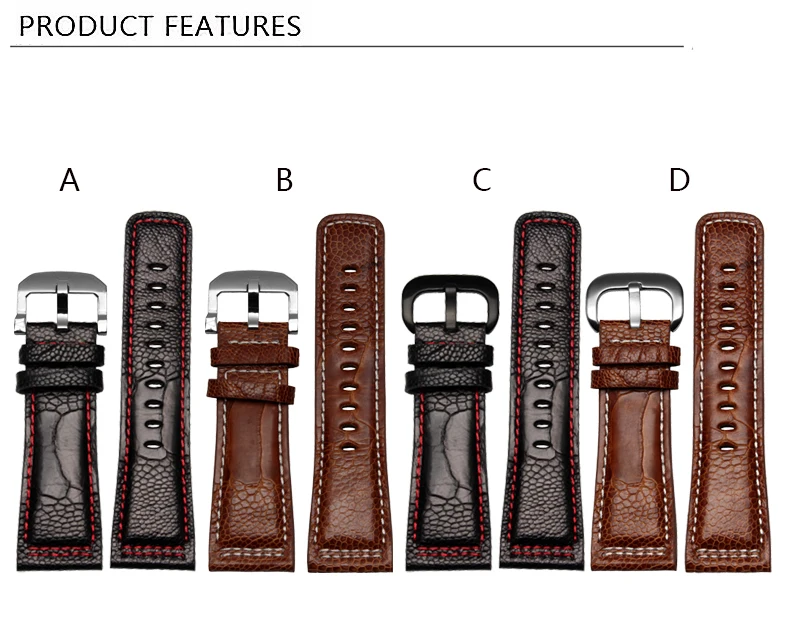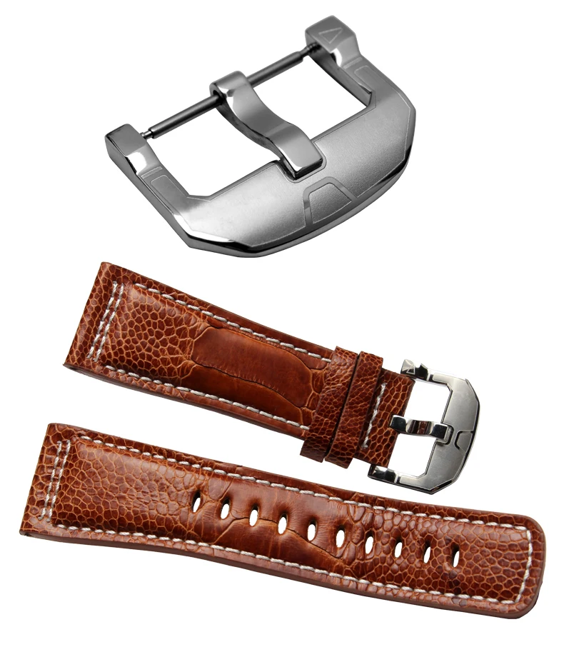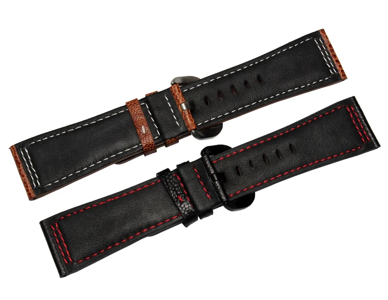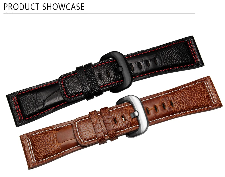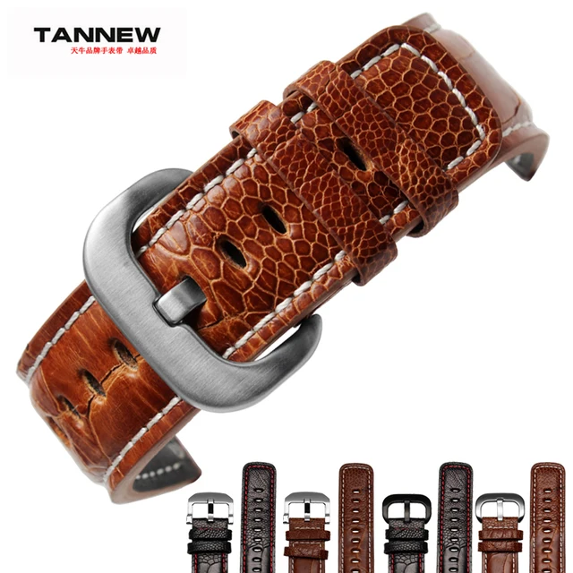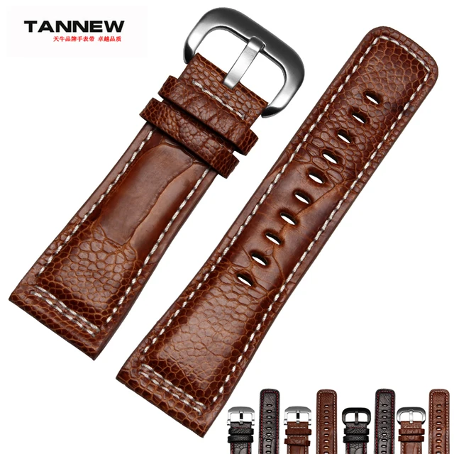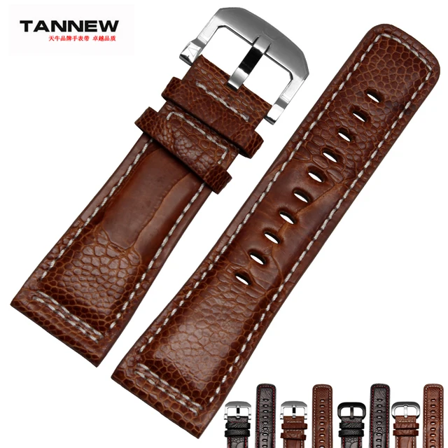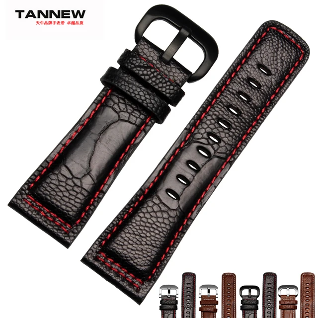 | [해외]28 미리메터 손으로 바느질 정품 가죽 타조 피트 가죽 시계 스트랩 일치하지 P1 P2 M1 남성 시계 액세서리 |