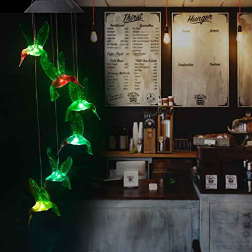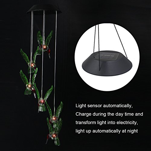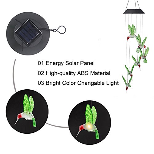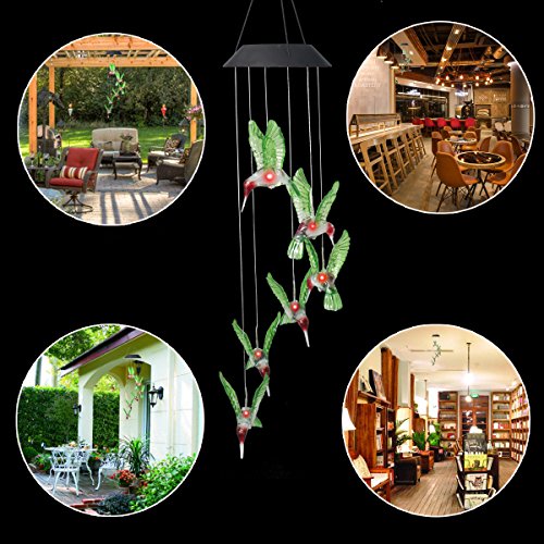 Solar Powered Wind Chimes,Suniness LED Solar Mobile Wind Chime,Color-Changing Waterproof LED Hanging Lamp Wind Chime for Outdoor Indoor Gardening Lighting Decoration Home (Hummingbird)