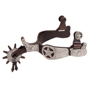 Product DescriptionWeaver AT German Silver Texas Jingle Bob 10pt Spur Men's antiqued Texas show spur with jingle bob 2" Shank 1" Band Engraved German silver trim 10 Point rowel0