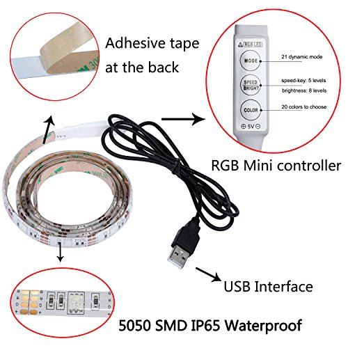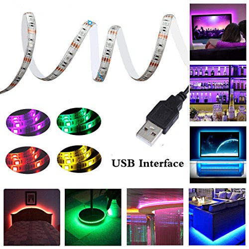 LED Strip USB Powered RGB Multi-color Flexible LED Strip Lighting Waterproof TV Backlight Background Lighting Kit - 100CM (3.28Ft) 5V 5050 30LEDs for HDTV, Desktop PC etc