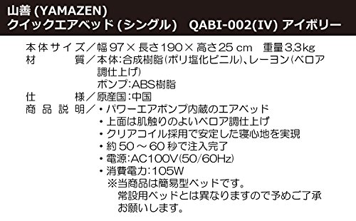 원본상품명: 山善(YAMAZEN) クイックエアベッド シングル【ブラック/ブラウン/アイボリ?/ゼブラ/レオパ?ド】 幅190?行97 AC電源ポンプ??