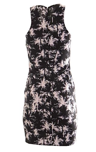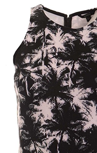 This dress by Guess features palm tree print allover, rounded neck, racerback, sleeveless, sheath silhouette, hidden back zipper, scuba knit fabric.