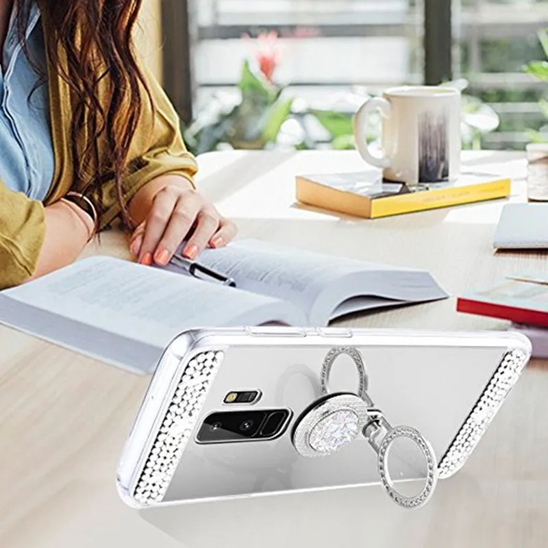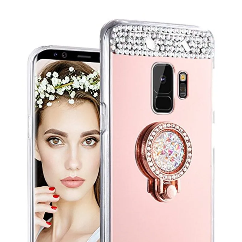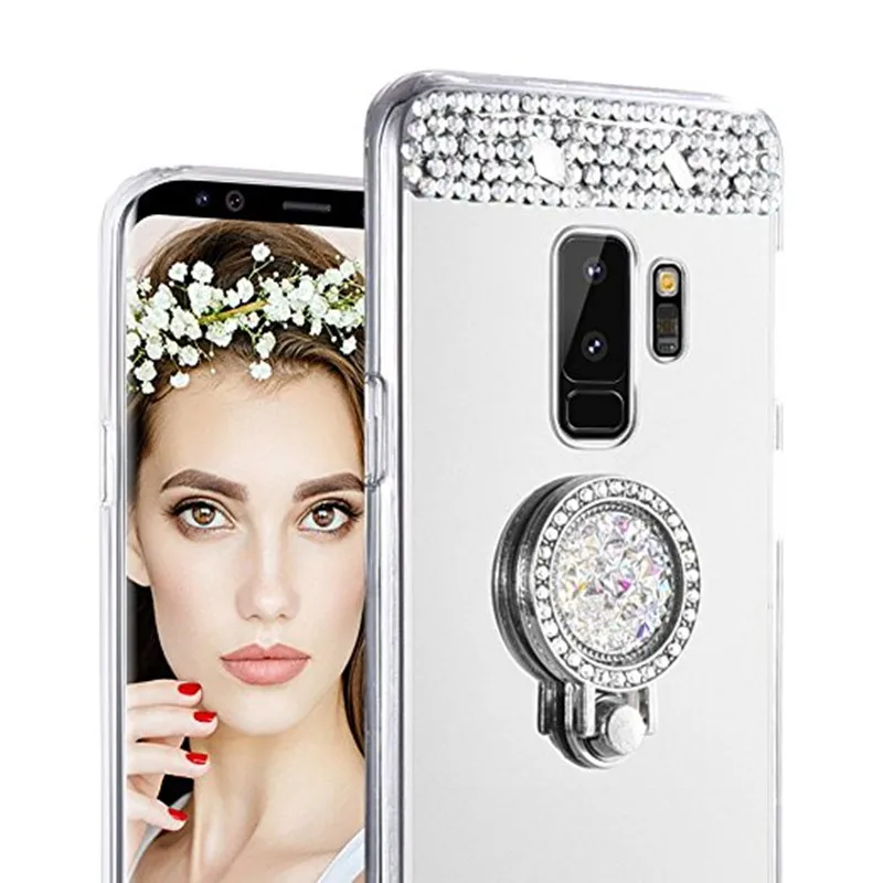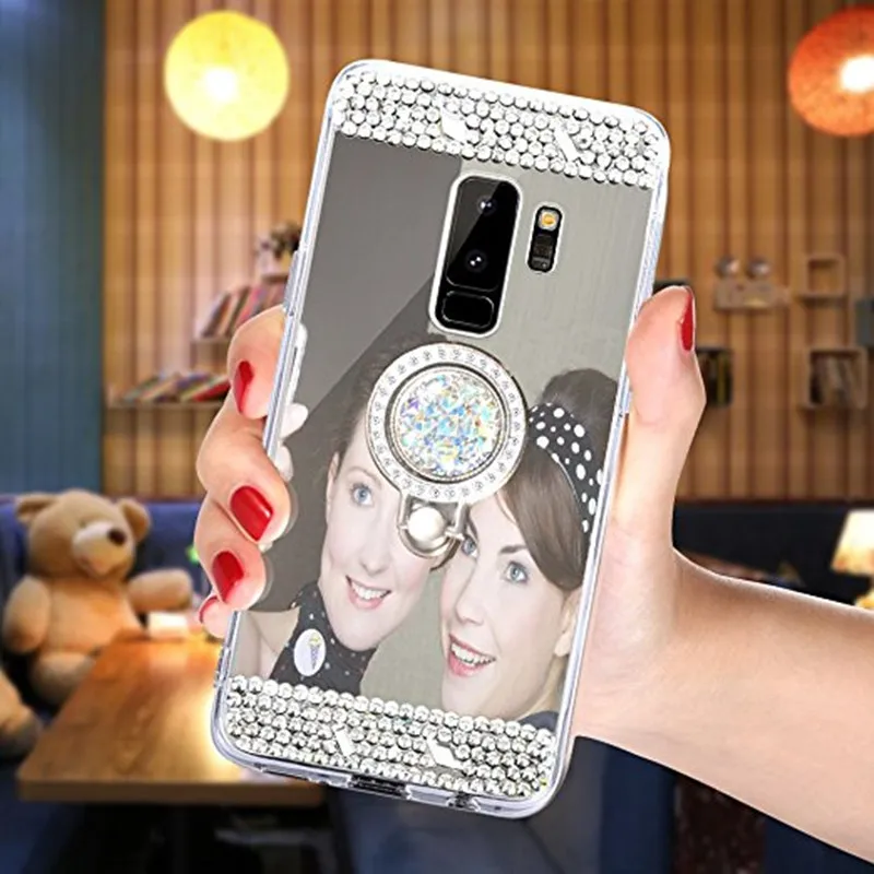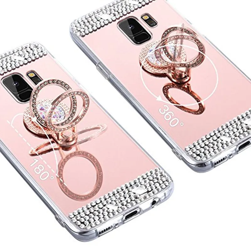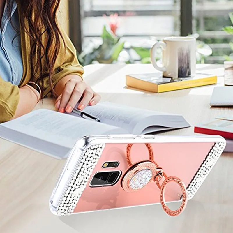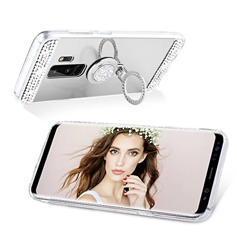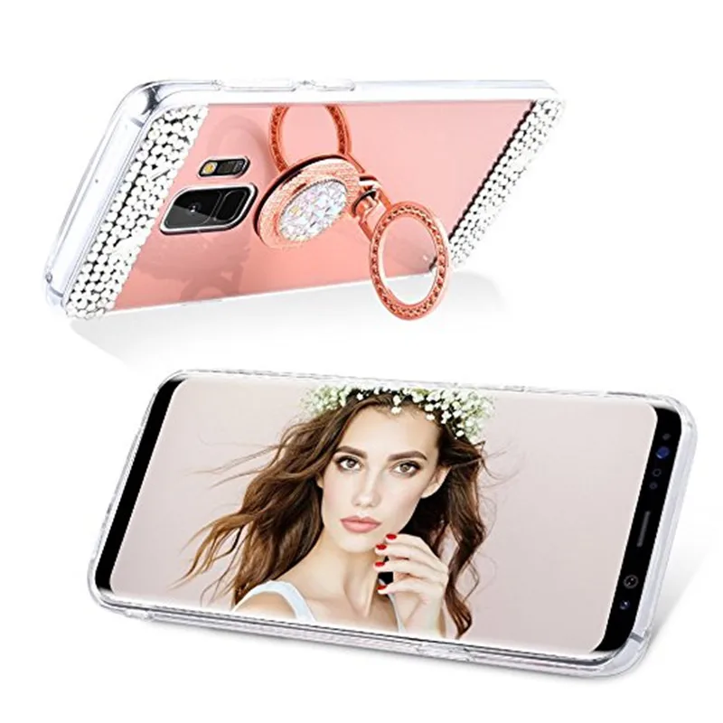 Features:Pop Mirror Ring stand holder crystal design bumper phone case cover