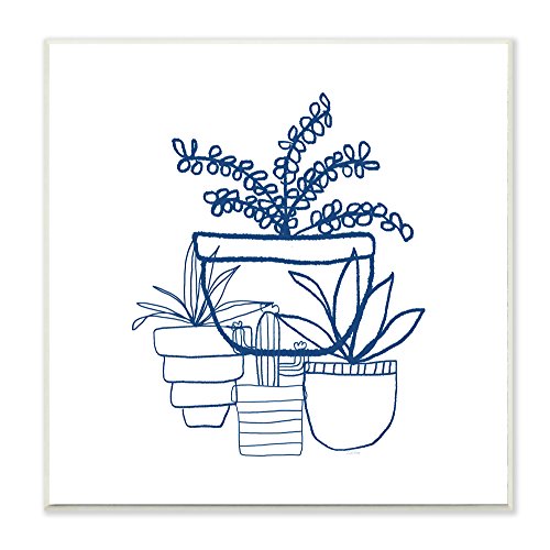 Stupell Home Décor Indigo Succulent Line Drawing Wall Plaque Art, 12 x 0.5 x 12, Proudly Made in USA