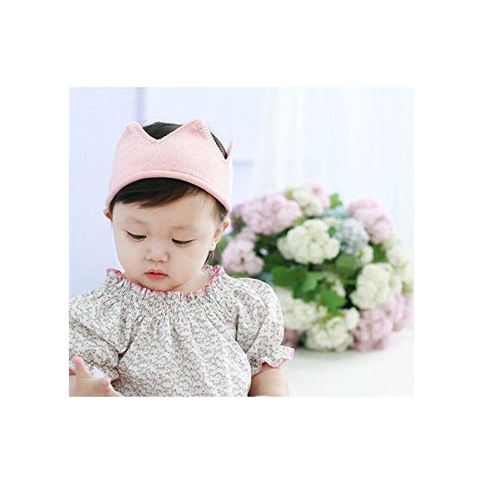 Remeehi 【베이비에 크라운을/선택가능 3색】베이비 니트 크라운 왕관 기념 촬영 생일 버스데이 세레모니 결혼식 에 신사참배 퇴원 결혼식 핑크