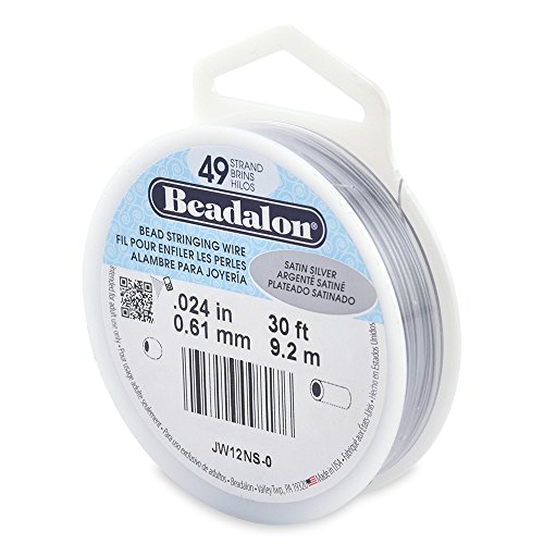 Beadalon 49-Strand Bead Stringing Wire, 0.024-Inch, Satin Silver, 30-Feet