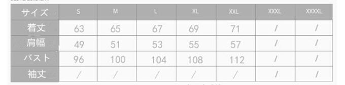 ■実寸サイズ(cm):S-3XLサイズ表示写真をご覧下さい。