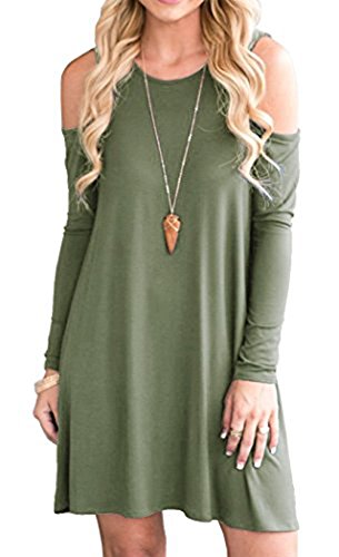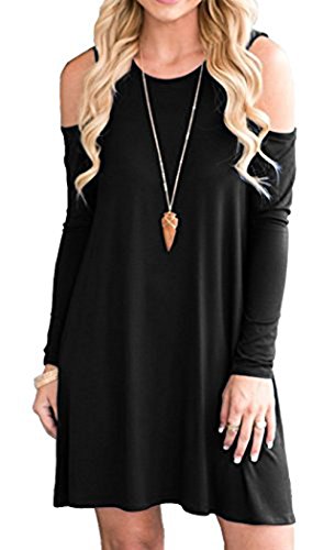 Casual wear,Loose fit.Size may run large,suggest one size down to avoid too loose or baggy fit.Newest Size ChartSmall:Length:32.2",Bust:15.3",Shoulder:13.0"Medium:Length:33.8",Bust:17.3",Shoulder:13.3"Large:Length:35.0",Bust:18.9",Shoulder:14.1"X-Large:Length:36.2",Bust:19.6",Shoulder:15.0"Just one sway of the Take Effect Black Swing Dress is all it takes to experience pure bliss! A rounded neckline and short sleeves with cutout lattice detail take shape in lightweight jersey knit, leaving the swing bodice to steal the show!Casual Simple and Swing T-Shirt Style.so easy to style with sandals and a long necklace.Mainly Material:Cotton,Super comfortable and softSleeve Style:Short Sleeves with unique cut out lattice detail shoulderRounded Neckline and Swing hemDress Length: Above Knee,Mini Dress.Available in size S/M/L/XL,Colors:Black,Army Green,Grey,Wine Red,Navy Blue,Beige,Coffee,Blue.Fits Mostly Occasions: Home/Work Out/Beach/Party etc.Take all measurements from the outside with the garment laying flat.Measurements may exist 1-32 cm difference.Colors may appear slightly different via website due to computer picture resolution and monitor settings.Feature