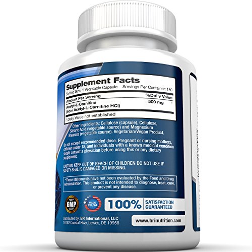 -. Title : BRI Nutrition Acetyl l-Carnitine - 180 Count 500mg L Carnitine Capsules - 1000mg Servings