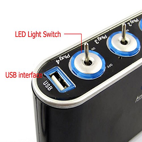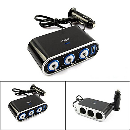 New 3 Way Car Cigarette Lighter Socket Splitter with USB and LED light switch control