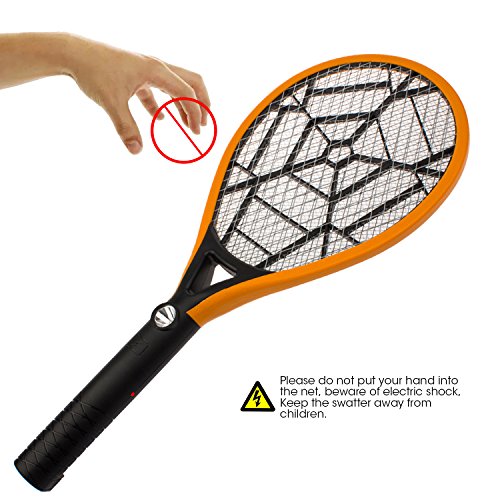 - 5.[Three Seconds Intelligently Remove Static Electricity]--This electric fly swatter racket Loosen the electronic mosquito swatter zapper press button for three seconds,net surface will automatically remove rest electricity,safe and reliable.This electric mosquito killer Only kill bugs won't hurt human.Note:Forbid to put hands into net.