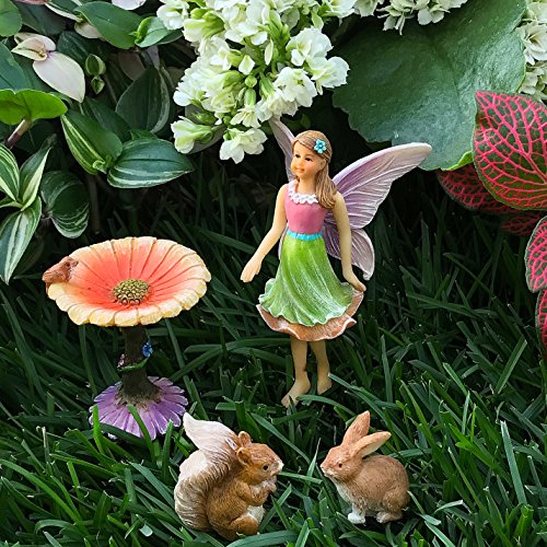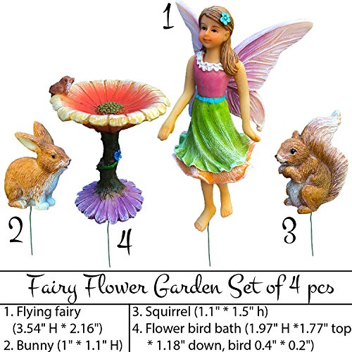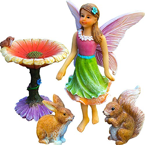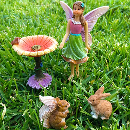 Fairy Garden Kit - Miniature Figurines & Accessories - Hand Painted Flower Set of 4 pcs - for Outdoor or House Decor - By Mood Lab