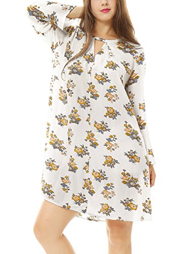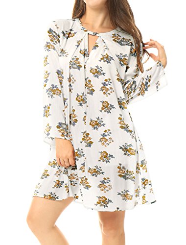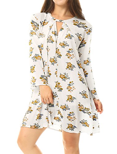 Title : Allegra K Women Keyhole Front Floral Oversized Swing Dress S White