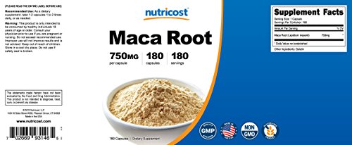 Each bottle of Nutricost Maca Root contains 180 capsules containing 750mg of high quality Maca Root.