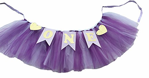 Studio : Alemon Publisher : Alemon Binding : Toy Product Description Purple 1st Birthday Party Supplies Decorations Tutu Banner for Girls.Makes the perfect high chair accessory decorating kit for Kids birthday party.Size: Banner measures approx 4.2 inch x 6.8 inch; Tutu approx 43 inch x 13.6 inch.Package: 1 X ONE Pennant Banner;1 X Purple Tutu highchair decoration; Bonus 4 Purple Balloons.100% money back guarantee. 0