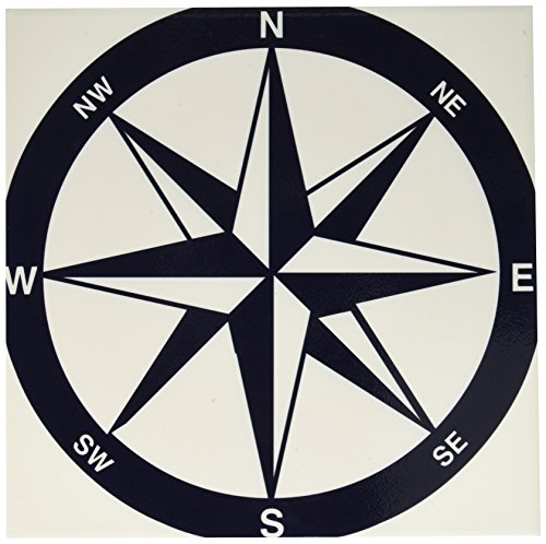 3dRose ct_213841_4 Blue and White Nautical Compass Ceramic Tile, 12"