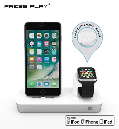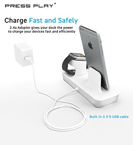 -. Binding : Wireless Phone Accessory -. Brand : Press Play -. Label : Press Play Products -. Manufacturer : Press Play Products -. PackageQuantity : 1 -. ProductGroup : Wireless -. ProductTypeName : WIRELESS_ACCESSORY -. Publisher : Press Play Products -. Studio : Press Play Products -. Title : ONE Dock Duo APPLE CERTIFIED Power Station Dock, Stand & Charger for Apple Watch Smart Watch, iPhone, & iPod ( MAGNETIC CHARGING CABLE INCLUDED)