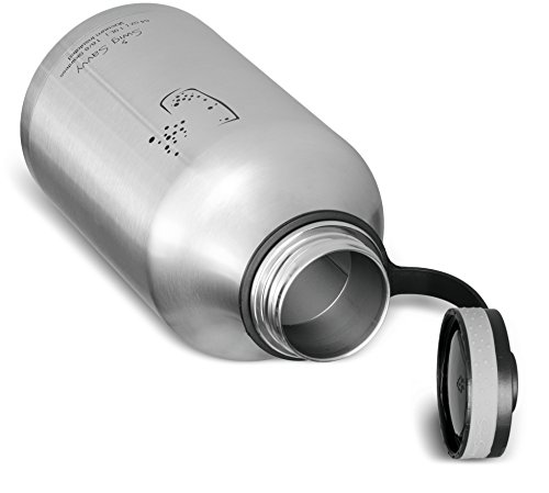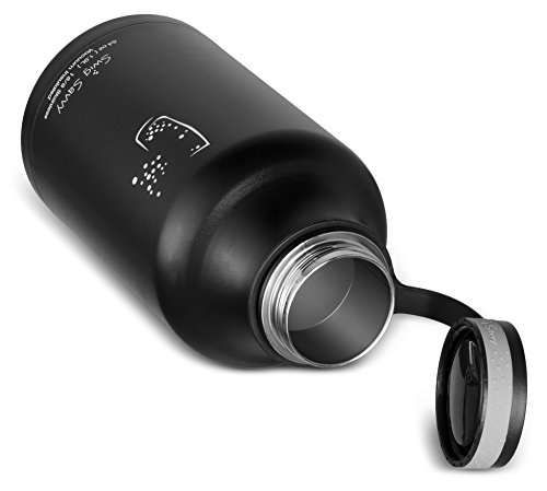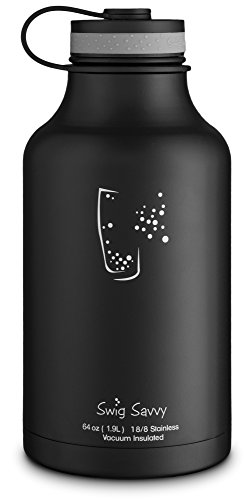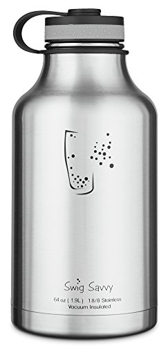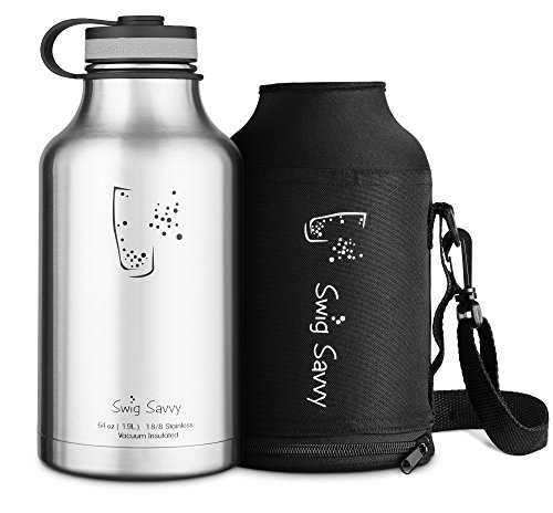 -. Title : Swig Savvy's Stainless Steel Insulated Water Bottle and Beer Growler,wide Mouth 64oz Capacity, Double Wall Design, for Hot and Cold Beverages, Incloueds Water Bottle Pouch (Stainless Steel)