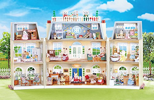 - Feature : The ultimate super-deluxe dream house! / 9 large rooms on 3 floors / Spacious balcony and rooftop patio / Chandelier lights up / To be used with Calico Critter figures and furniture, not included