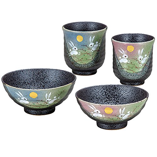 일식 그릇 쿠타니야키 부부 찻잔 부부 다완 페어 세트 뛰어 토끼 AK5-0526