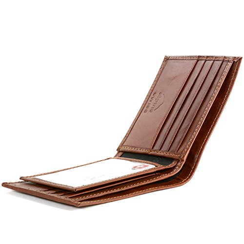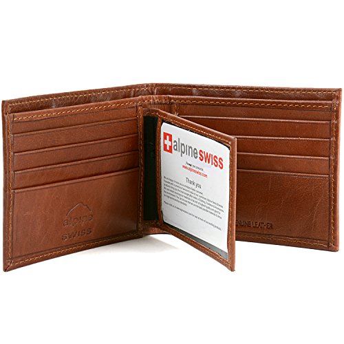 Men's Center Flip Bifold By Alpine SwissThis multi-card traveler with ID window is made of luxurious genuine leather inside & out- It's compact with quite a bit of capacity!  Product Features:Measures 4.25" x 3.37" x 1"Durably Rugged Yet Soft Genuine Top Grain LeatherID Window - Flip to show or hide10 Card Slots2 Additional Oversized Slots for Cards or ReceiptsFull Size Bill SectionQuality Workmanship with 8 stitches per Inch MSRP $45.00Alpine Swiss donates 250 meals every day to hungry children in the U.S. and around the world through our partnership with Children’s Hunger Fund. These meals are hand delivered in a Food Pack, which will contain enough food to feed a family of 4-5 for a week to the homes of the needy by trained volunteers in their community, establishing relationships that foster genuine care. Your purchase fuels this effort! Thank you!