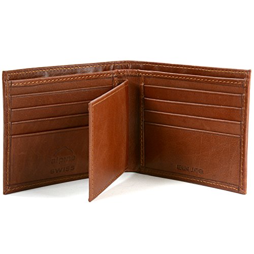 Alpine Swiss Men's Multi-Card Compact Center Flip Bifold Wallet Brown