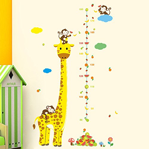 -. Title : MLM Giraffe Height Measurement Chart Fruit Wall Decals for Growing Kids Boys and Girls Removable Height Wall Sticker for Babys Room
