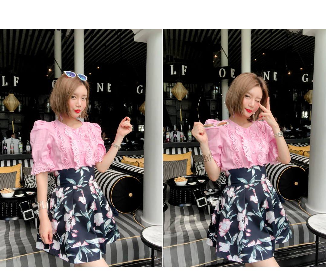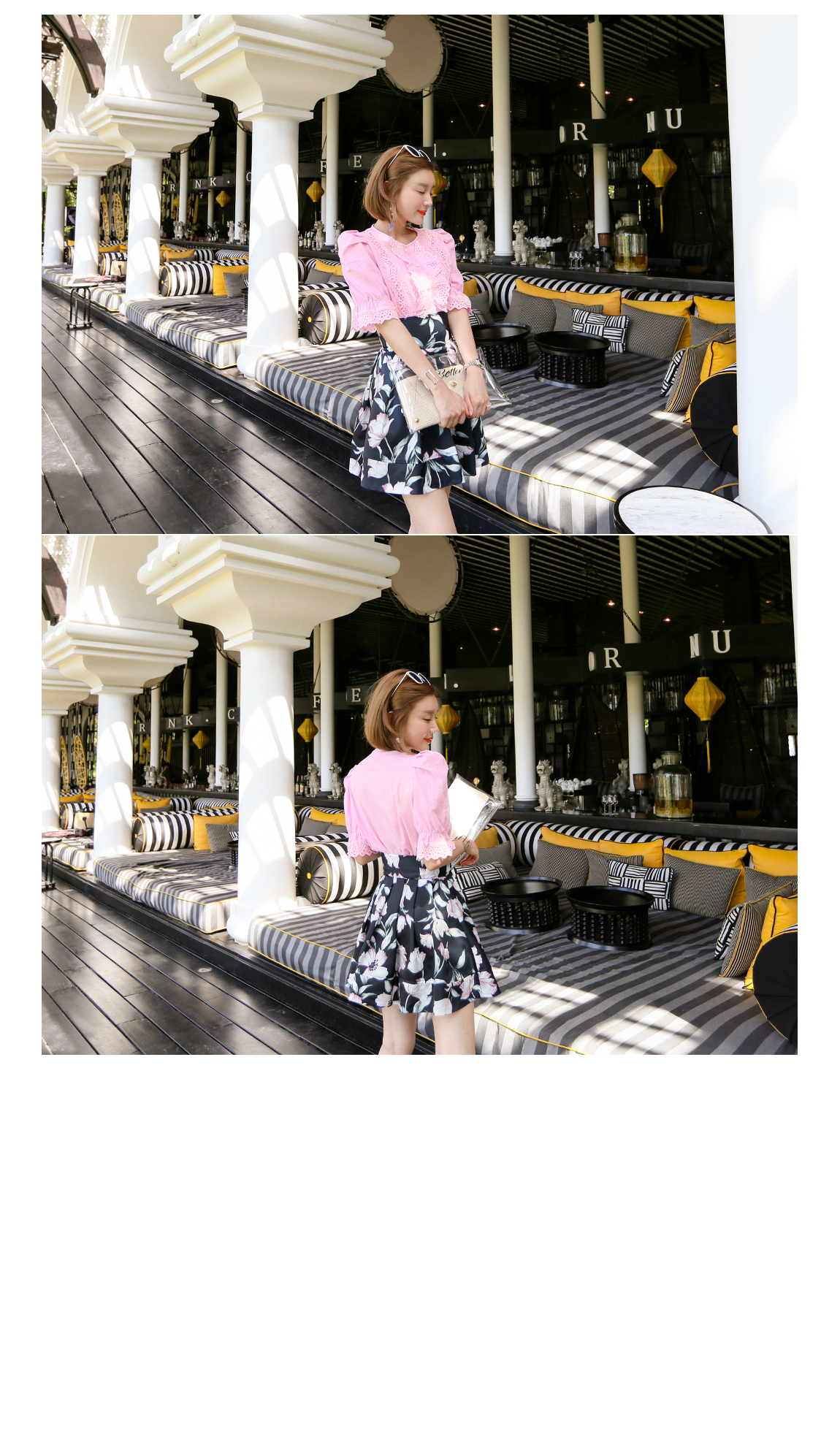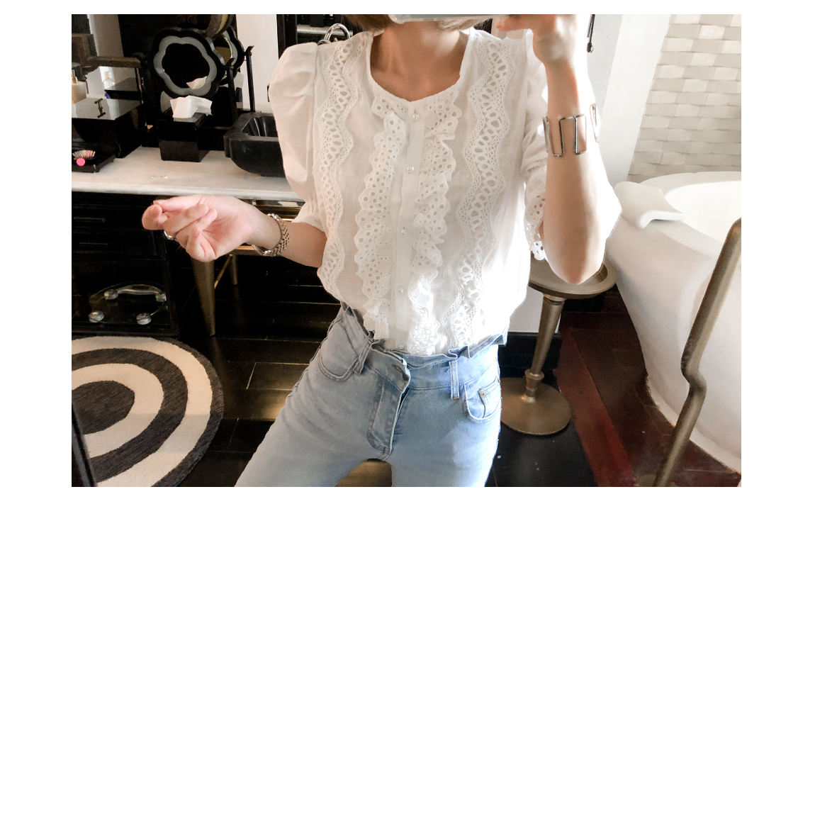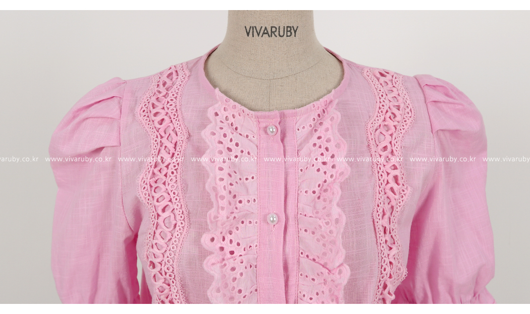 중앙의 레이스와 진주버튼이 귀여운 포인트가 되어줘요