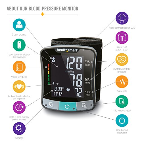 -. Title : HealthSmart Premium Talking Automatic Digital Wrist Blood Pressure Monitor, Two Person 120 Reading Memory, Black and Gray