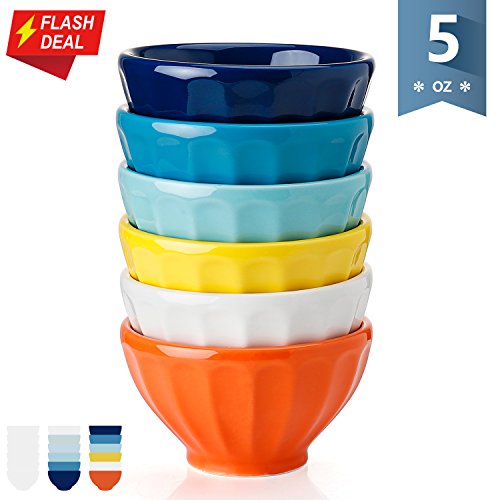 PERFECT PORTION CONTROL SIZE - These 5oz bowls Just the right portion control size for ice cream, small snacks, dipping sauces, individual side dishes, or making shirred eggs. And the right size for kids little hands which make them easy to hold.