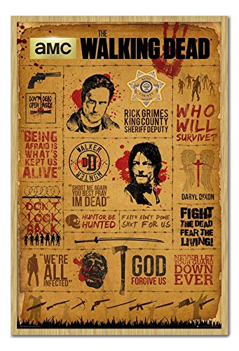 -. Title : The Walking Dead Infographic Poster Magnetic Notice Board Beech Framed - 96.5 x 66 cms (Approx 38 x 26 inches)