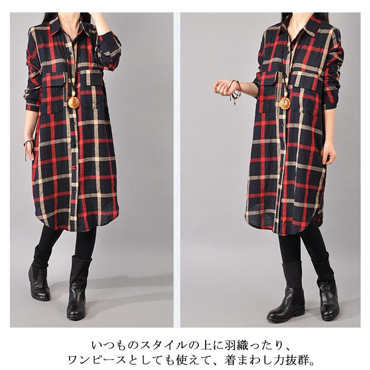 | 定番人気のきれいめチェック柄ロングシャツが再販決定!薄くすぎず厚くすぎず、程度良い厚さが使いやすさも◎通気性に優れた綿麻素材を採用します。いつものスタイルの上に羽織ったり、ワンピースとしても使えて、着まわし力抜群。そのままでゆったりと着てもOKですが、ウエストベルトなどとあわせてメリハリある着こなしにしてもオシャレ! | |