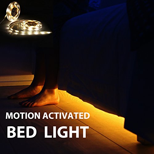 Battery Powered + AC power Motion LED Bed Strip Light: With battery box(batteries not include), could also support AC power adapter(not include).The High lighting brightness 45pcs SMD LEDs last up to 50,000h lifespan supplies sufficient light in its area,