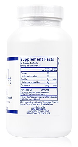 Vital Nutrients - Flax Oil - Certified Organic and Cold Pressed Extracted Without Chemicals - 100 Softgel Capsules