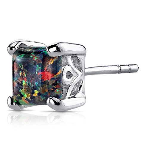 -. Title : Created Black Opal Stud Earrings Sterling Silver P.R.Incess Cut 2.00 Carats
