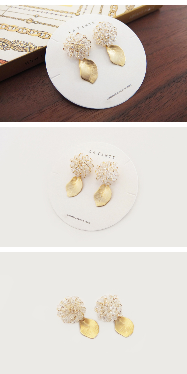 - 영롱하게 빛나는 비즈열매 아래로 분리가능한 잎사귀 팬던트가 달린 유니크한 디자인의 핸드메이드 비즈리프 이어링입니다.^^ 핸드메이드로 작은 디테일까지 신경 쓴 제품이라 실제로 착용했을 때 더 마음에 드는 제품이구요. 무엇보다 비즈부분과 잎사귀가 분리 가능하기 때문에 투웨이로 착용하실 수 있어 더욱 더 실용적인 아이템입니다. 침 부분은 티타늄으로 알러지 걱정없이 착용하실 수 있습니다.^^ PRODUCT INFO. · 상품명 : 비즈리프 이어링 (titanium post) · 사이즈 : 전체길이 : 3.5cm 비즈부분 지름 : 1.8cm 잎사귀 길이 : 3cm · 소재 : 신주,비즈,티타늄침 · 다각도로 빛이 나는 투명한 비즈볼과 골드컬러의 잎사귀 팬던트가 한 셋트인 이어링입니다. · 제조국 : 한국 · 제조사 : 라땅뜨 자체제작(o) / 협력업체 · 쥬얼리 제품 특성상 착용흔적(스크래치, 부품분리)이 있을 경우 교환및 환불이 어려우므로 이점 양해 부탁드립니다. · 모니터에 따라 색상이 조금씩 달라 보일수 있습니다. 이는 하자의 사유가 되지 않습니다. |
