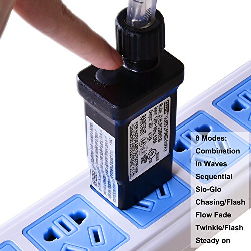 - 8 Modes (saving settings): combination, in waves, sequential, slogs , chasing/flash, slow fade, twinkle/flash, and steady on. With just one button for modes switch, it is convenient to press it when you want to change the mode.
