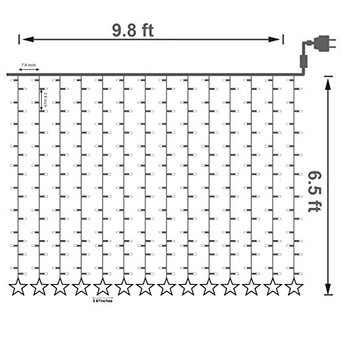 - Proper Length: With the length of 9.8ft and the width of 6.5 ft, these curtain lights have a suitable size for most of scenes. The diameter of the stars blow is 3.67 inches.