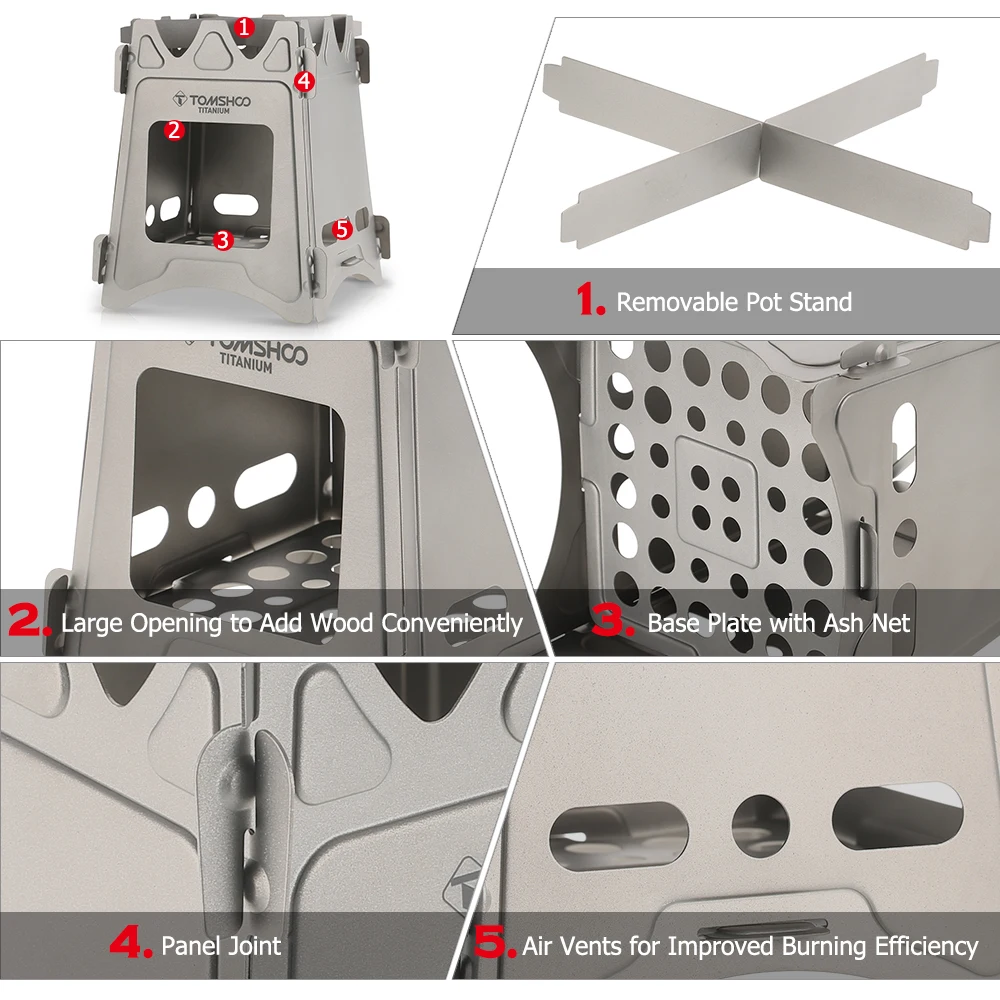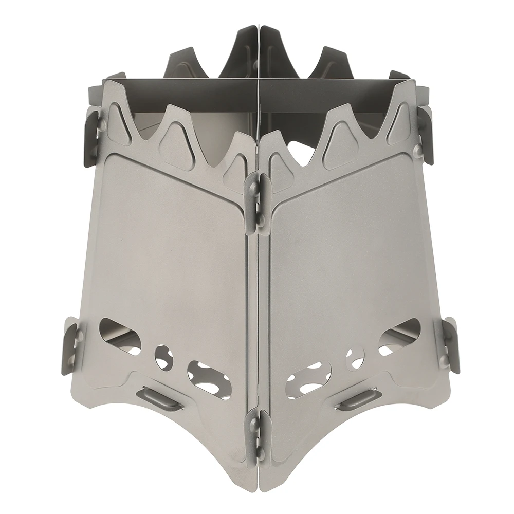 This stove is built with titanium construction that is corrosion-resistant, extremely durable and super light. Connect all panels together by each side which will just take seconds to complete. Cook a meal with easy-to-find, unlimited fuels like wood, twigs, branches, leaves and paper to cook a meal wherever you set up your camp, no chemical emissions, no carbon footprint. Fold the stove flat and stuff it in a pocket or backpack to start a low-carbon travel.