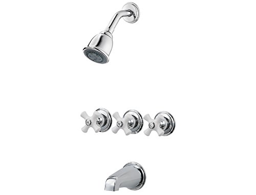 Pfister G01-8CPC Pfister 3-Handle Tub & Shower Faucet with Porcelain Cross Handles in Polished Chrome & White Porcelain, 2.0gpm