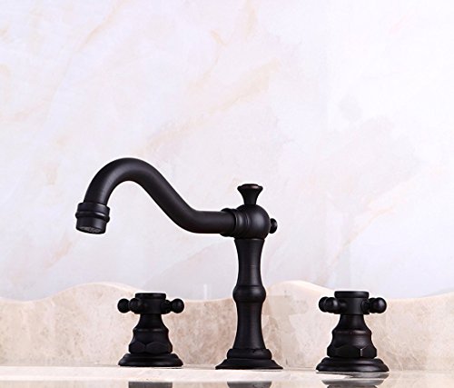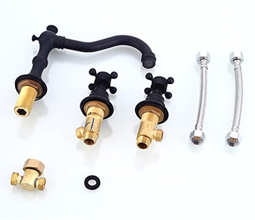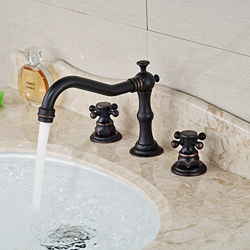 Greenspring Deck Mounted Three Holes Double Handles Widespread Roman Bathroom Sink Faucet 3pcs faucet, Oil Rubbed Bronze