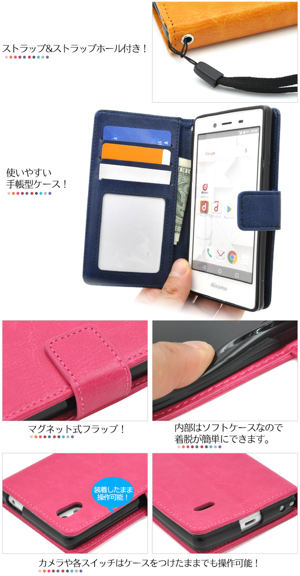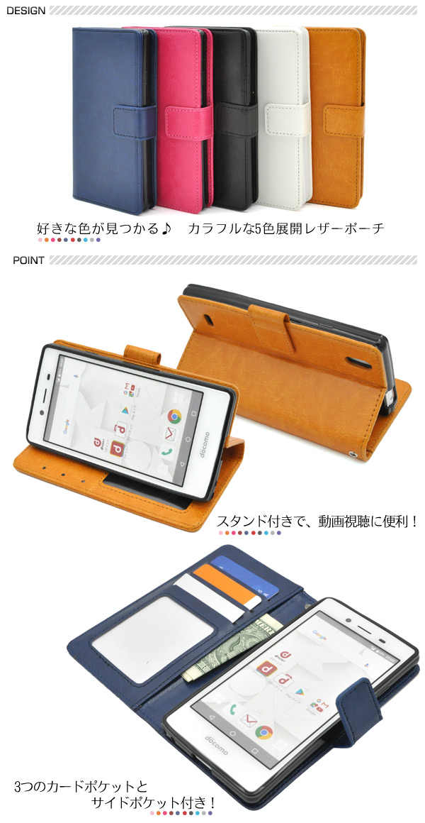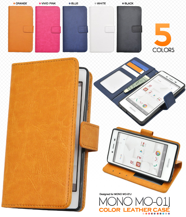 カラフルな5色展開!使いやすい手帳型ケース! MONO MO-01J用カラーレザーケースポーチ | | | |