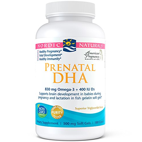 The official omega-3 of the American Pregnancy Association, Prenatal DHA in fish gelatin soft gels is the ideal supplement before and during pregnancy for pescatarians and individuals with restricted diets. With 480 mg DHA per serving, Prenatal DHA generously fulfills the international expert-recommended daily intake for DHA, providing safe and effective omega-3 nutrition for moms and babies alike. Plus, it contains 400 I.U. of added vitamin D3 (cholecalciferol), the natural form of vitamin D produced by the body, for strong bones and mood support.