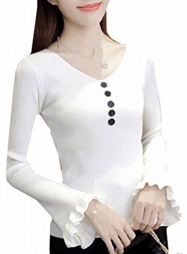 -. Title : Magno 袖 フリル Vネック ニット カットソー レディース 長袖 トップス