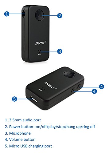 Simple to set up: (1) HOLD the Play/Pause button down to turn on the receiver (red light blinks 5 times continuously). (2) Search for Bluetooth device on your phone, and select the device name: IXCC-Car Kit to pair (red and blue LED lights will alternately blink as searching and pairing). (3)The blue LED will blink when the device is connected. To turn off the receiver, long press the Play/Pause button (blue light blinks 5 times continuously).